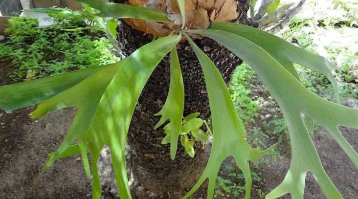 Estética Diferenciada: Possui dois tipos de folhas: as da base (escudiformes), que abraçam o suporte, e as pendentes (férteis), que se dividem criando o formato de chifre.